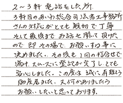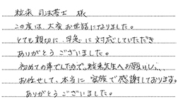 女性粒来様 この度は相続登記の手続きをして頂き大変お世話になりました。